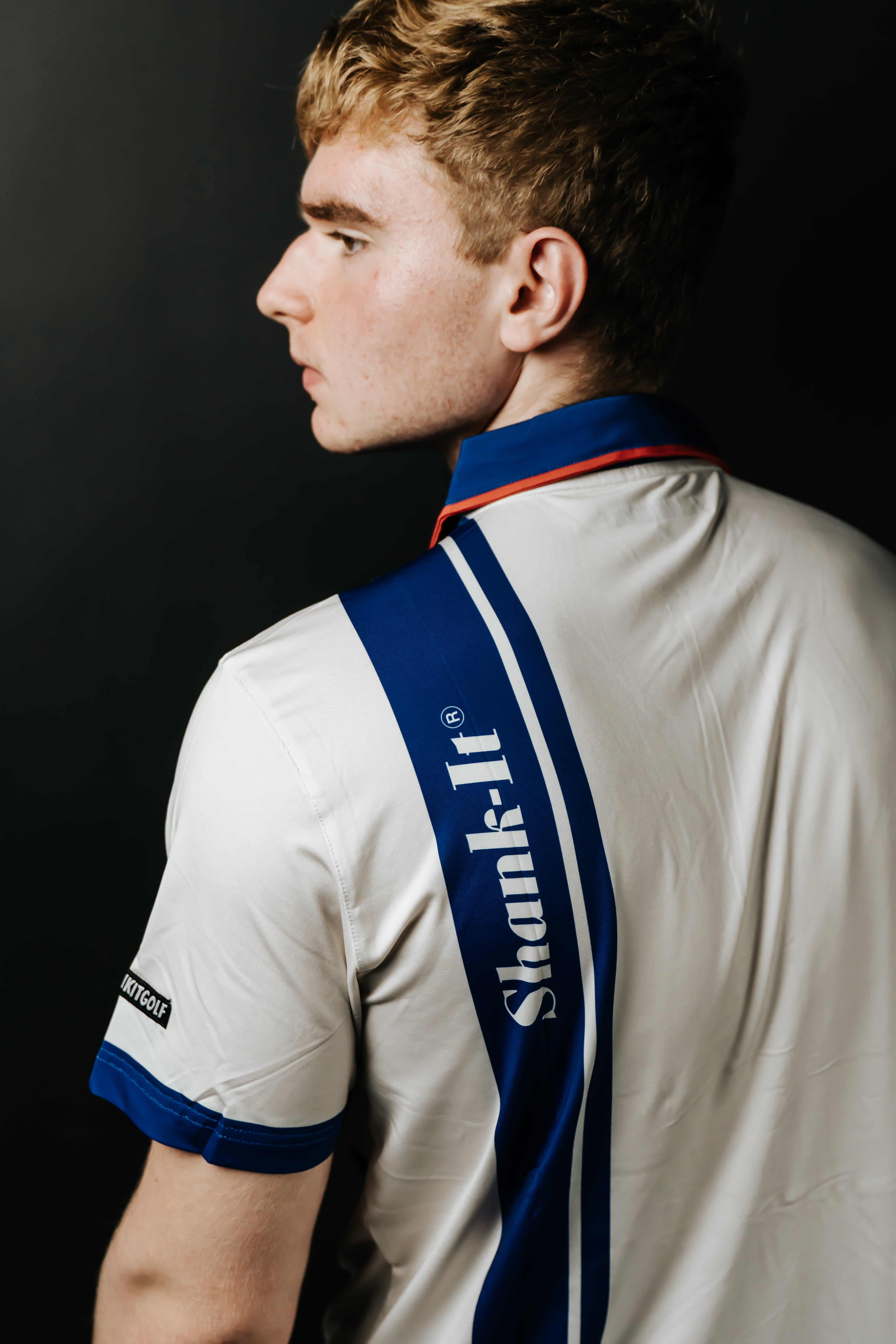 Model in the first image with the white background is 6'1 175 lbs and is wearing a size Large. Athletic fit for look good feel good round of golf. Made with 92% polyester and 8% spandex for a nice comfortable flexible shirt.