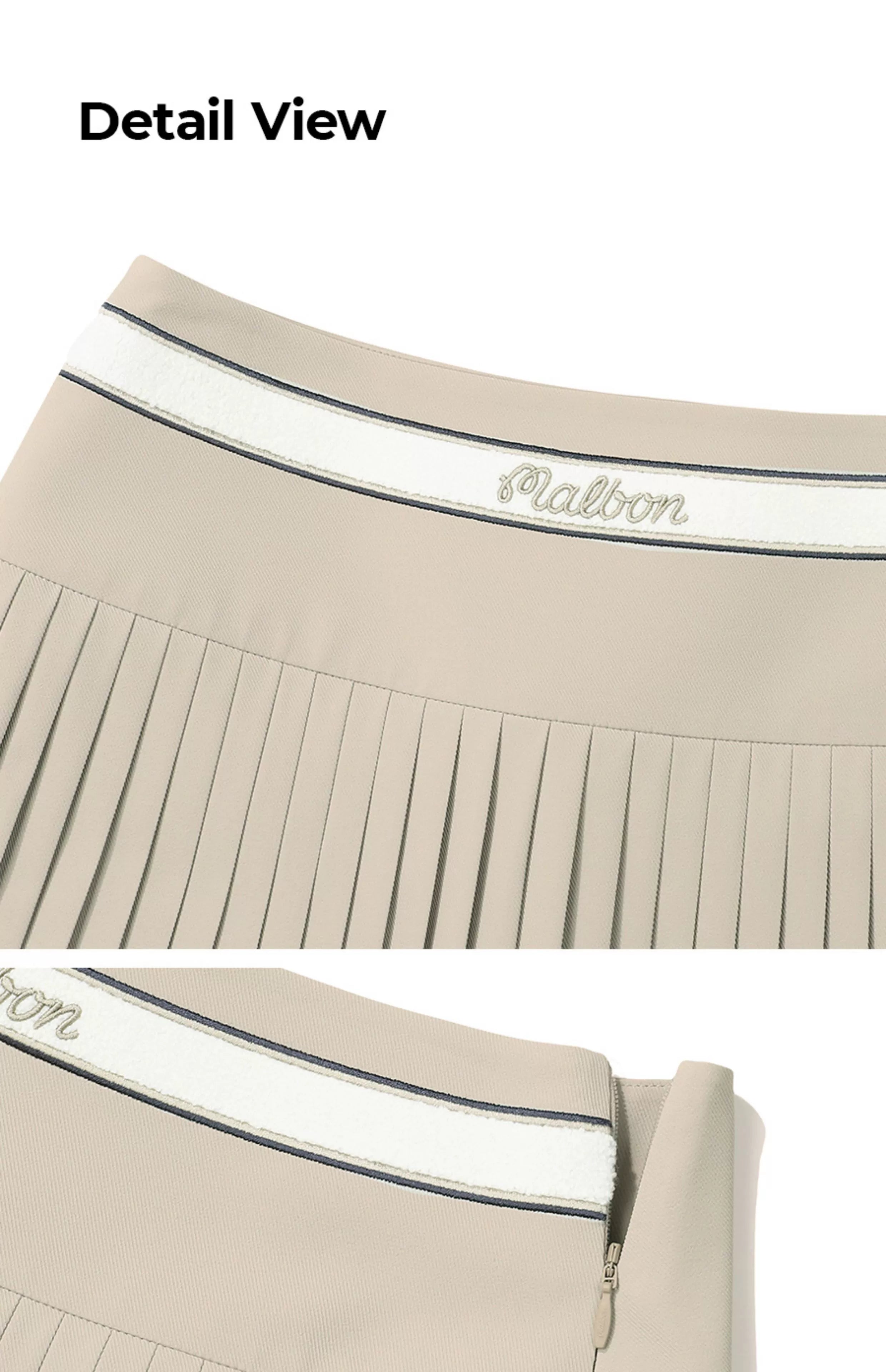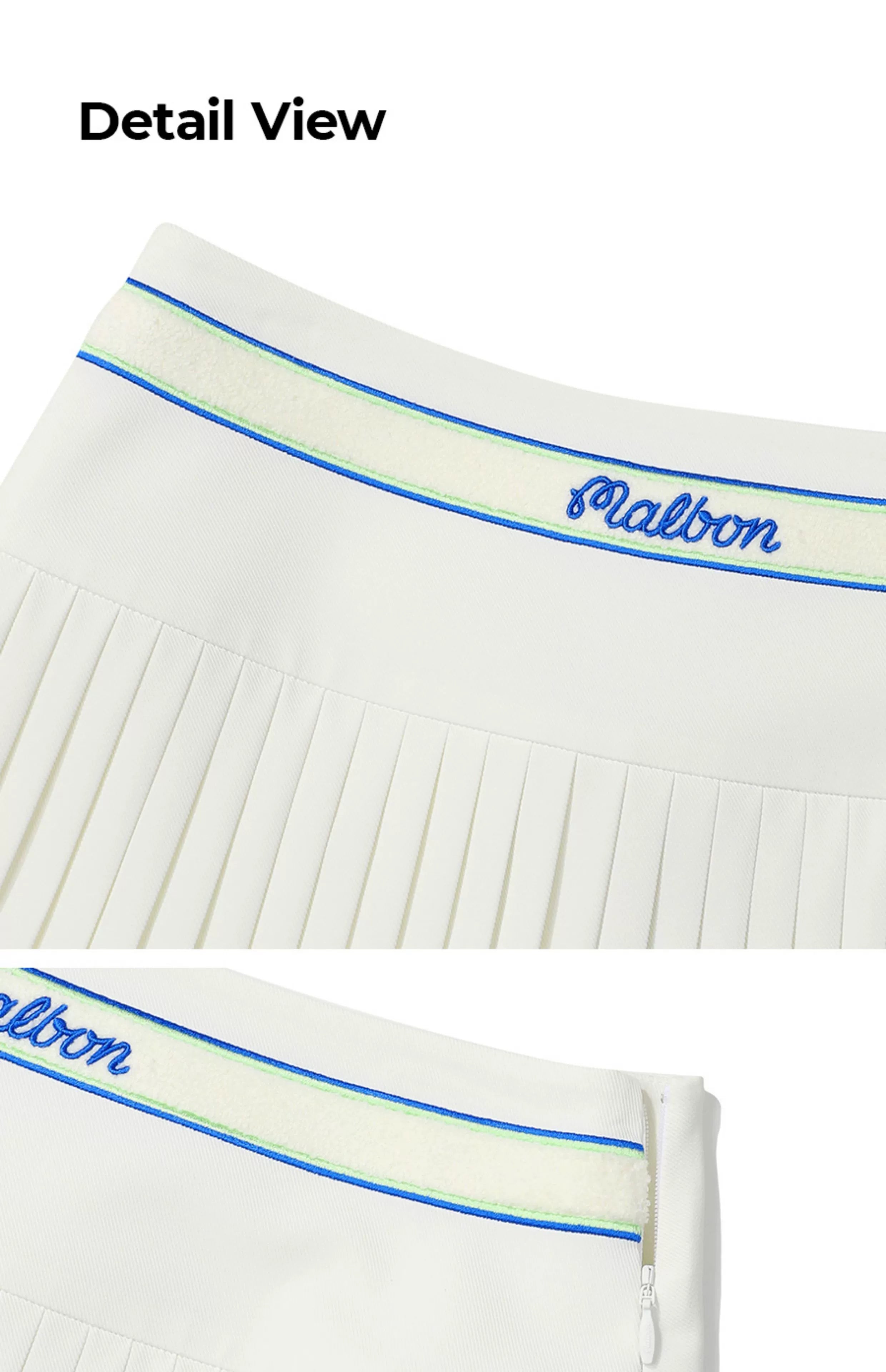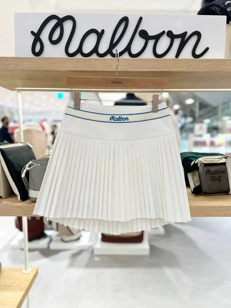 Perfect your swing and your style with the Malbon Golf Pleated Skirt. This versatile piece is designed to keep you looking chic while ensuring optimal comfort and mobility on the greens. The timeless pleated design with the signature embroidered waistband adds a dash of sophistication to your golf wardrobe. Available in bold Royal Blue, classic White, and neutral Beige, this skirt transitions effortlessly from the course to post-game celebrations.