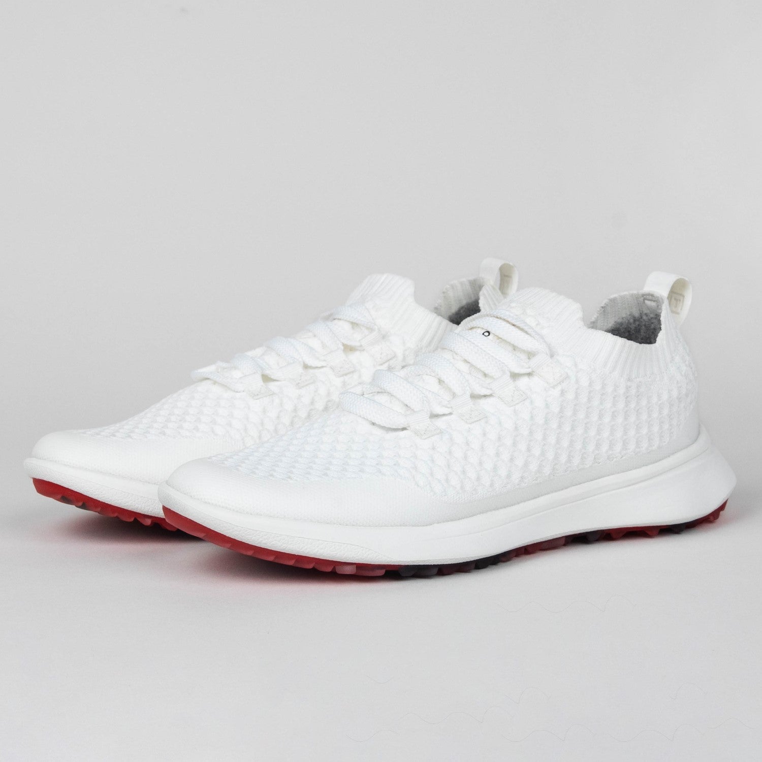 The little brother to our big brother Alpha. A light weight, breathable comfort machine! A true minimalist's dream in that it weights only 8.5oz and with a single layered knit upper your feet will be singing after 18 holes of play.
