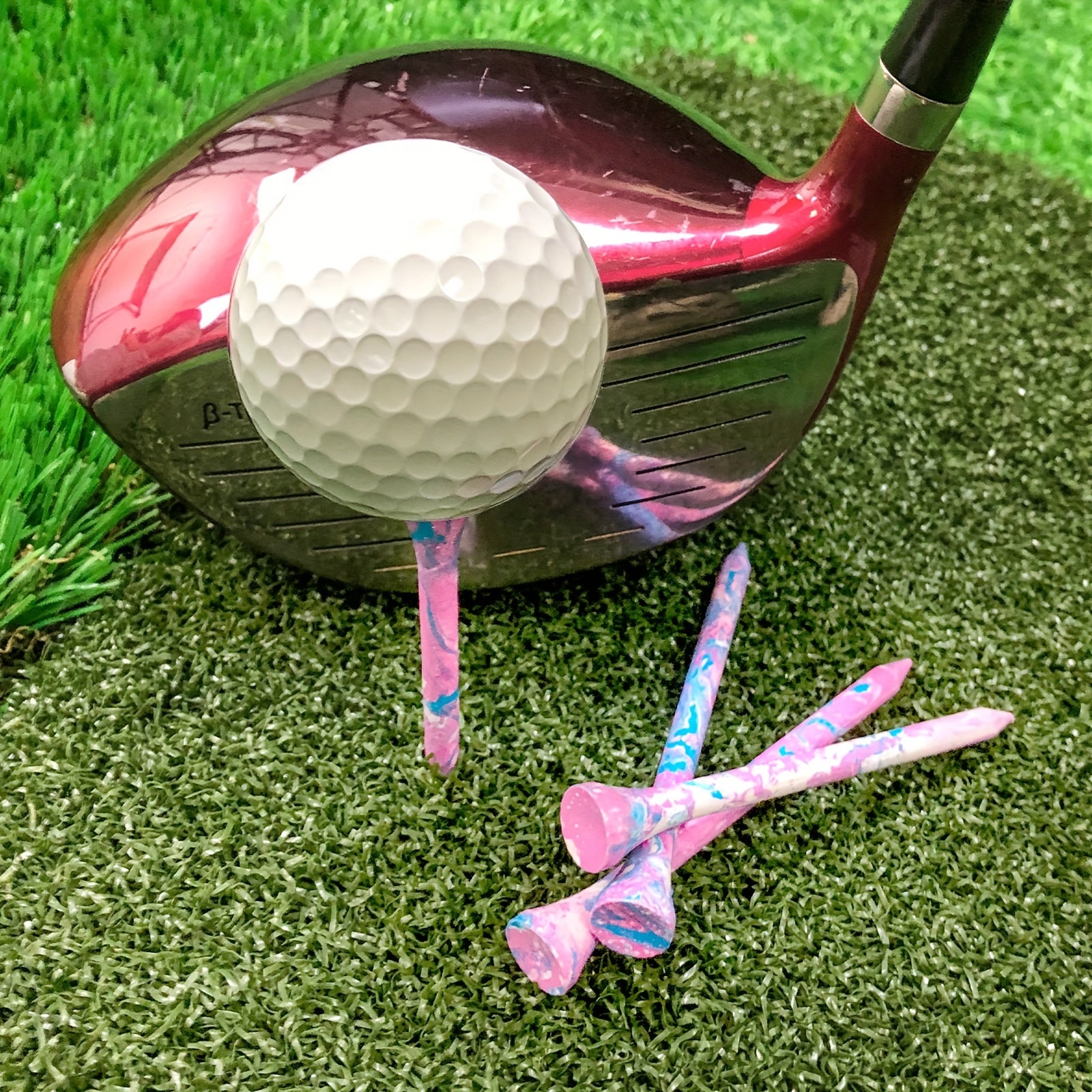 Take your game to the next level with these pink-and-blue camouflage wooden golf tees. Durable, stylish, and impossible to miss—these tees are here to hold your ball steady while you swing like a pro.