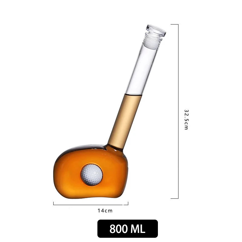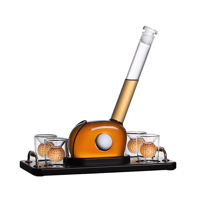 - Golf-Themed Design: A unique decanter shaped like a golf club and shot glasses that resemble golf balls.
