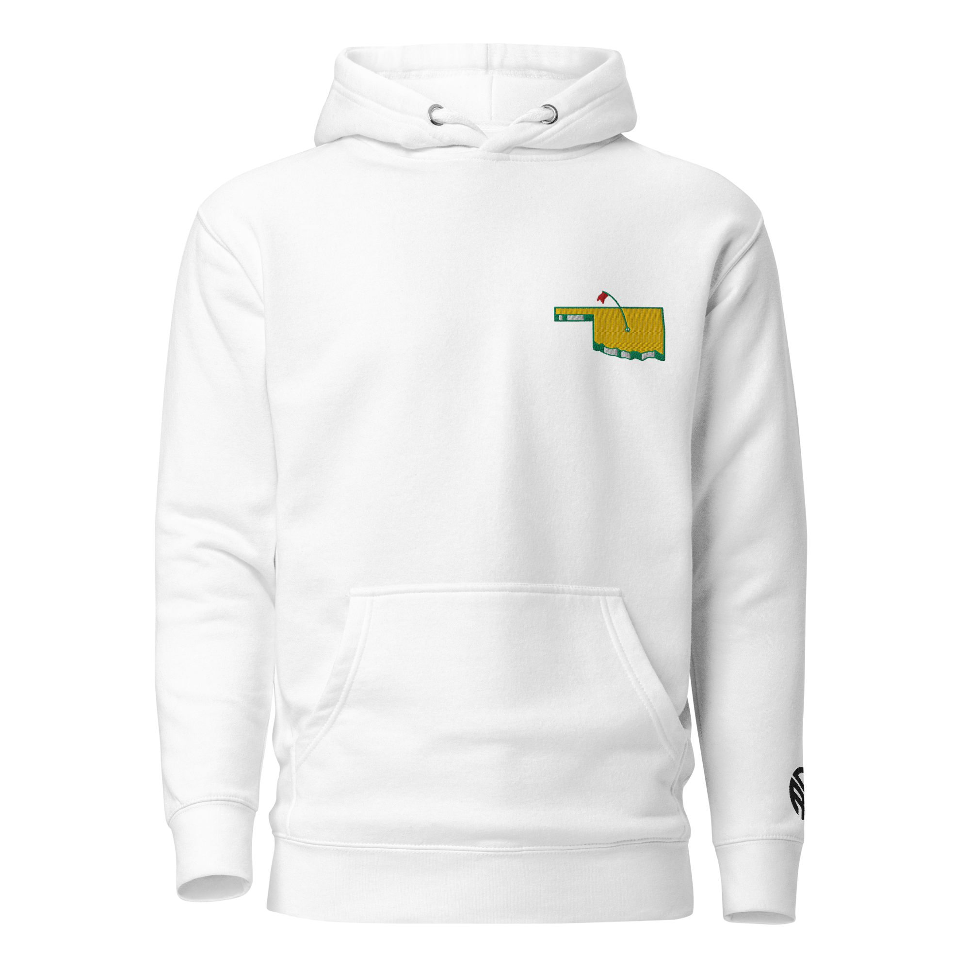 Cozy meets cool in the Oklahoma Breeze Hoodie. Featuring the iconic windswept flag design embroidered on soft, premium fabric, this hoodie is your new go-to for chilly nights, golf outings, and everything in between.