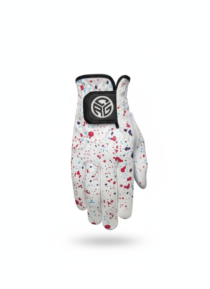 Make every swing a statement. The Splatter CRG Limited Drop glove blends 90s throwback style with modern performance. Designed with a bold red, white, and blue splatter pattern, it’s built for golfers who want to stand out without sacrificing feel.