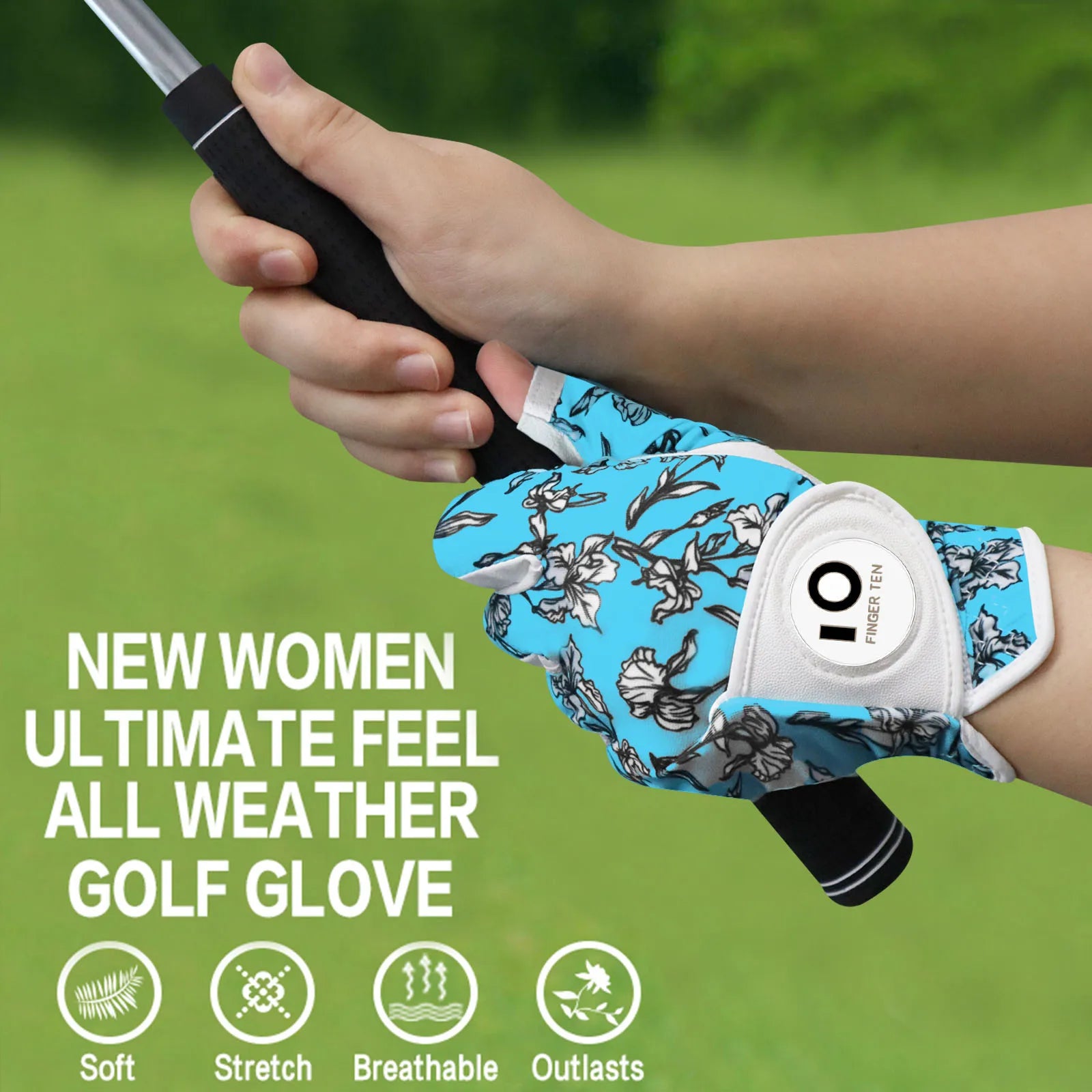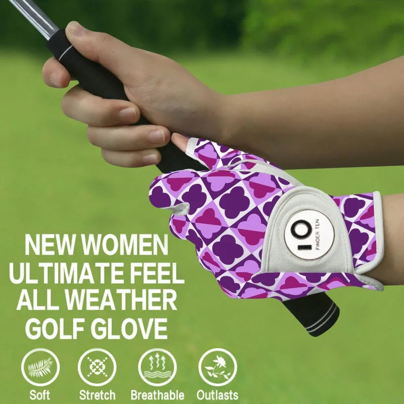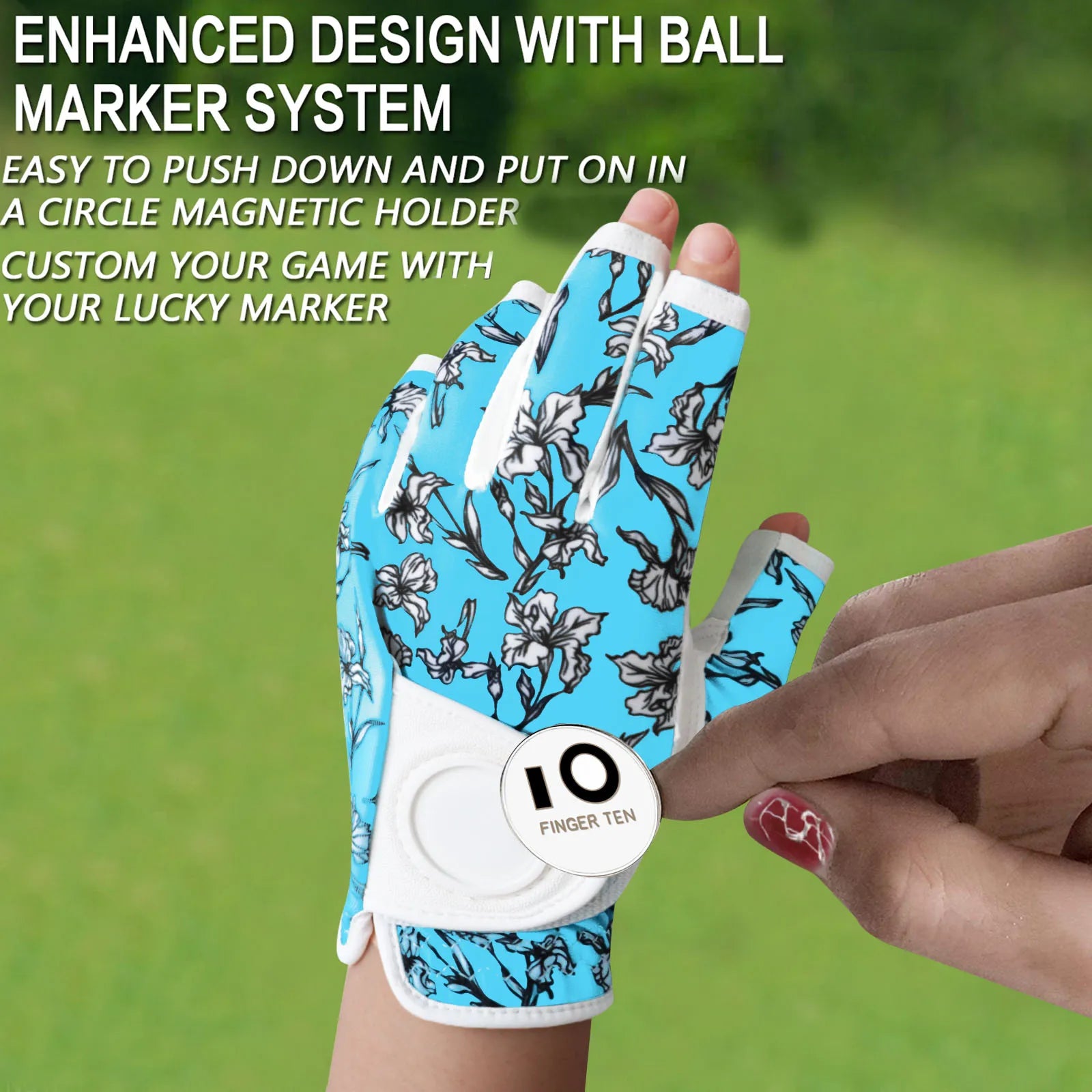 Women’s All-Weather Golf Glove with Ball Marker – Stylish Half-Finger Design